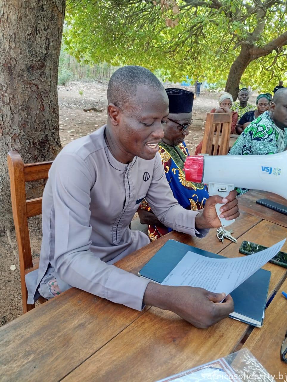 La rencontre a également été marquée par la présence effective du Directeur départemental du Cadre de Vie et des Transports des Collines, Salustiano Zounnon, qui a animé une communication portant sur les dangers liés à l’utilisation des sachets plastiques ainsi que sur les dispositions légales en vigueur en République du Bénin en matière de protection de l’environnement.