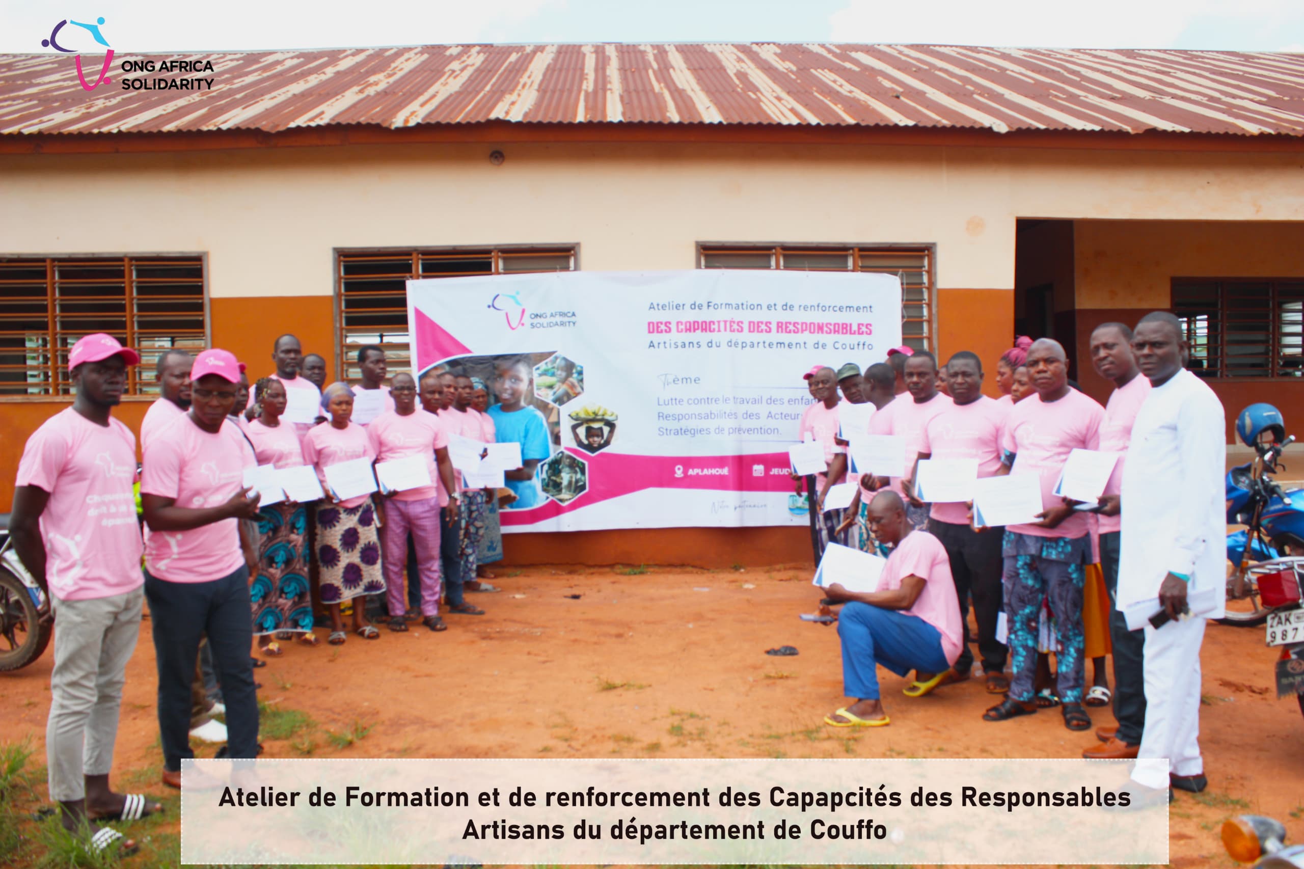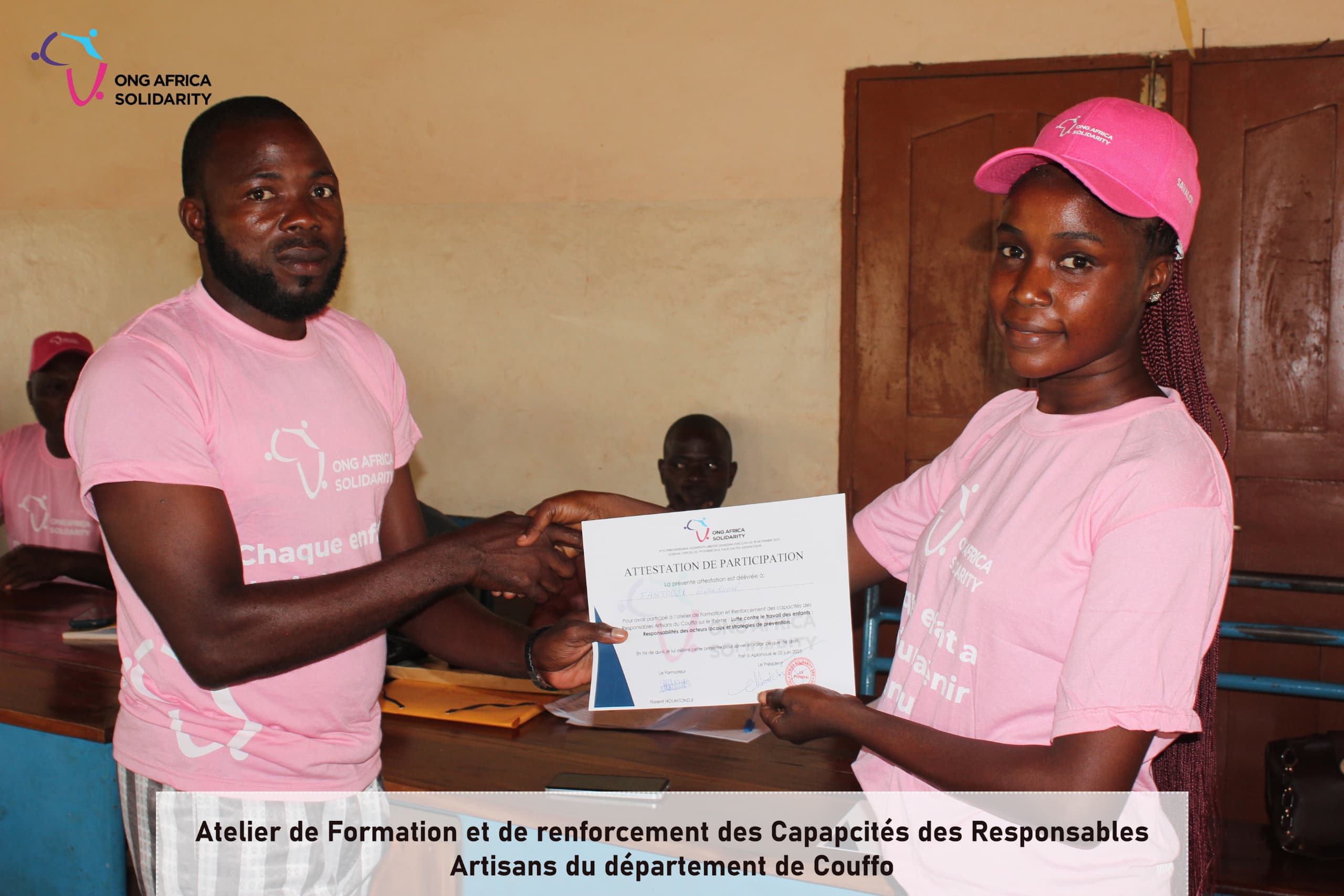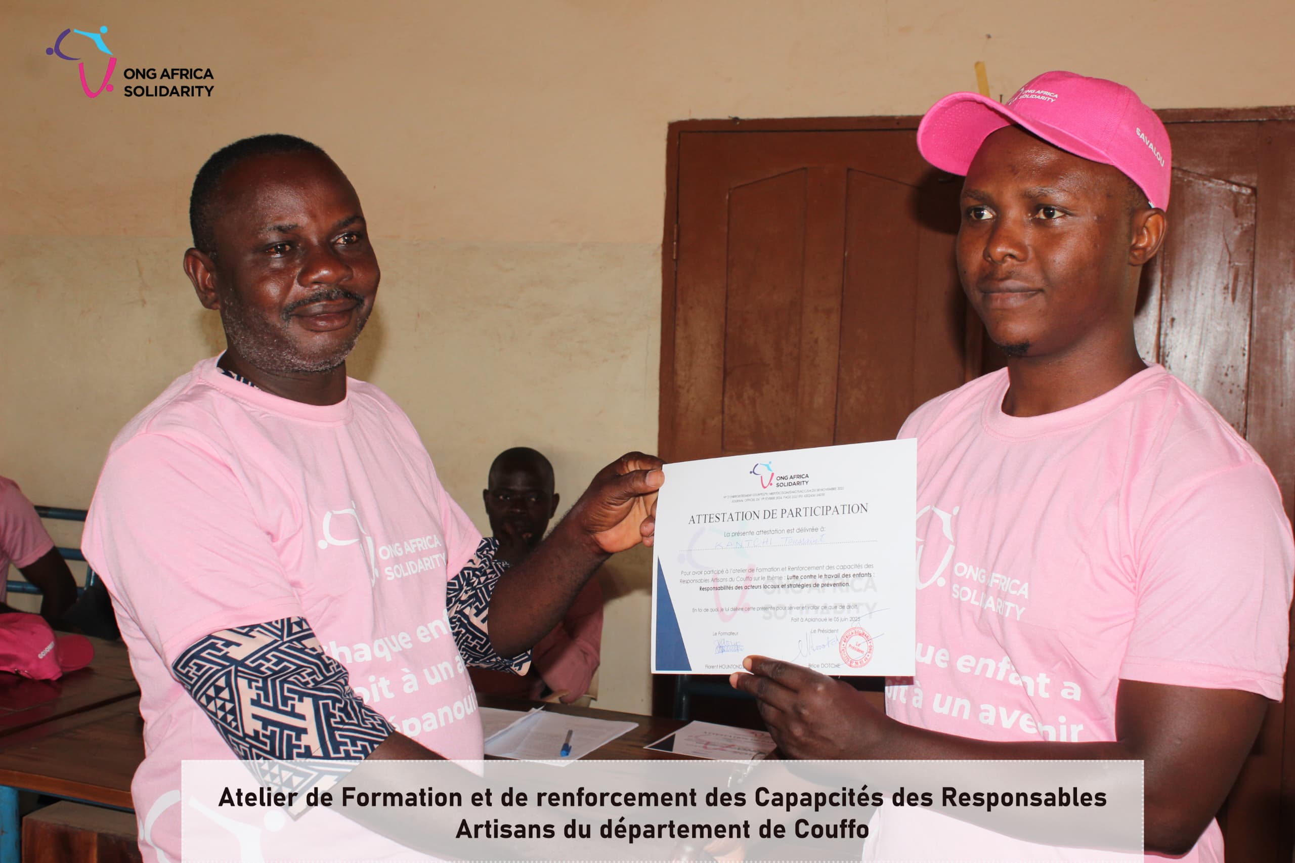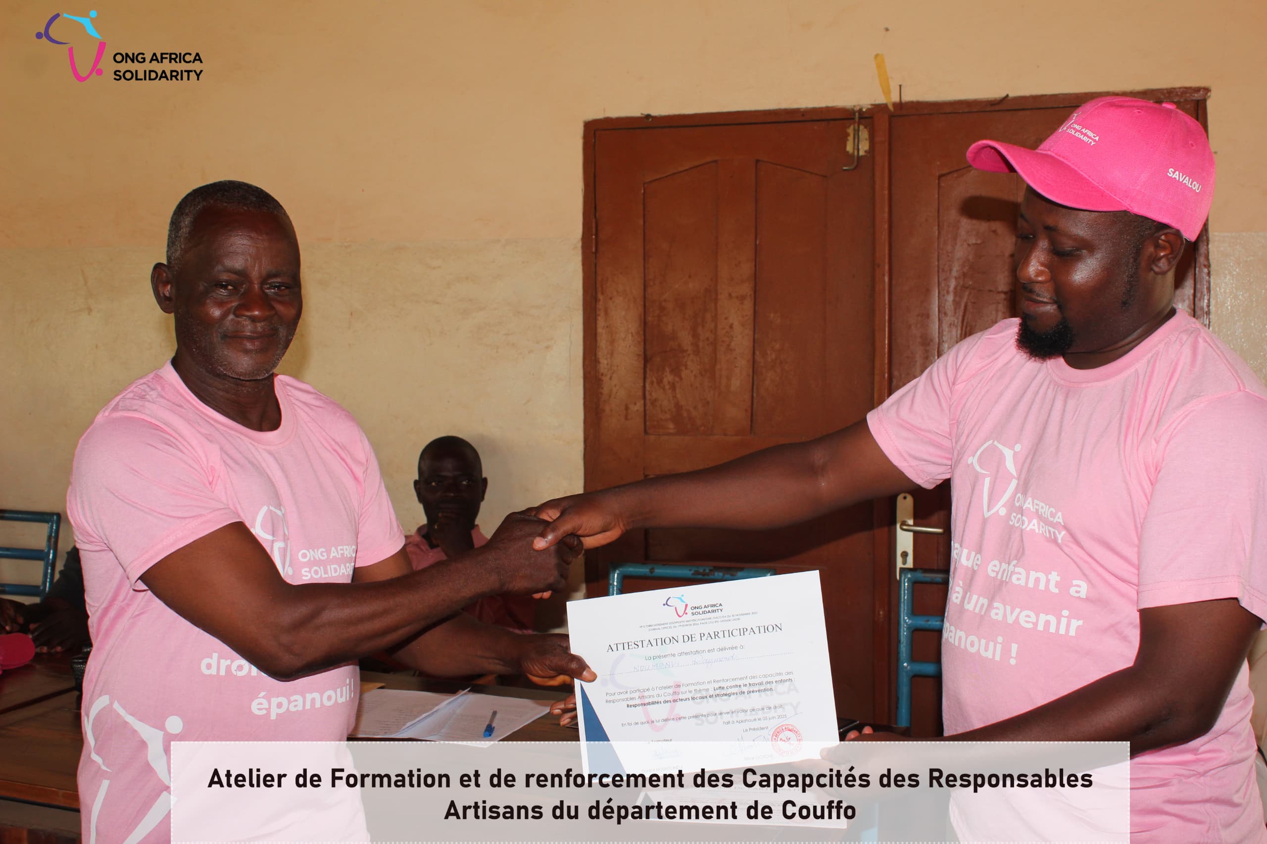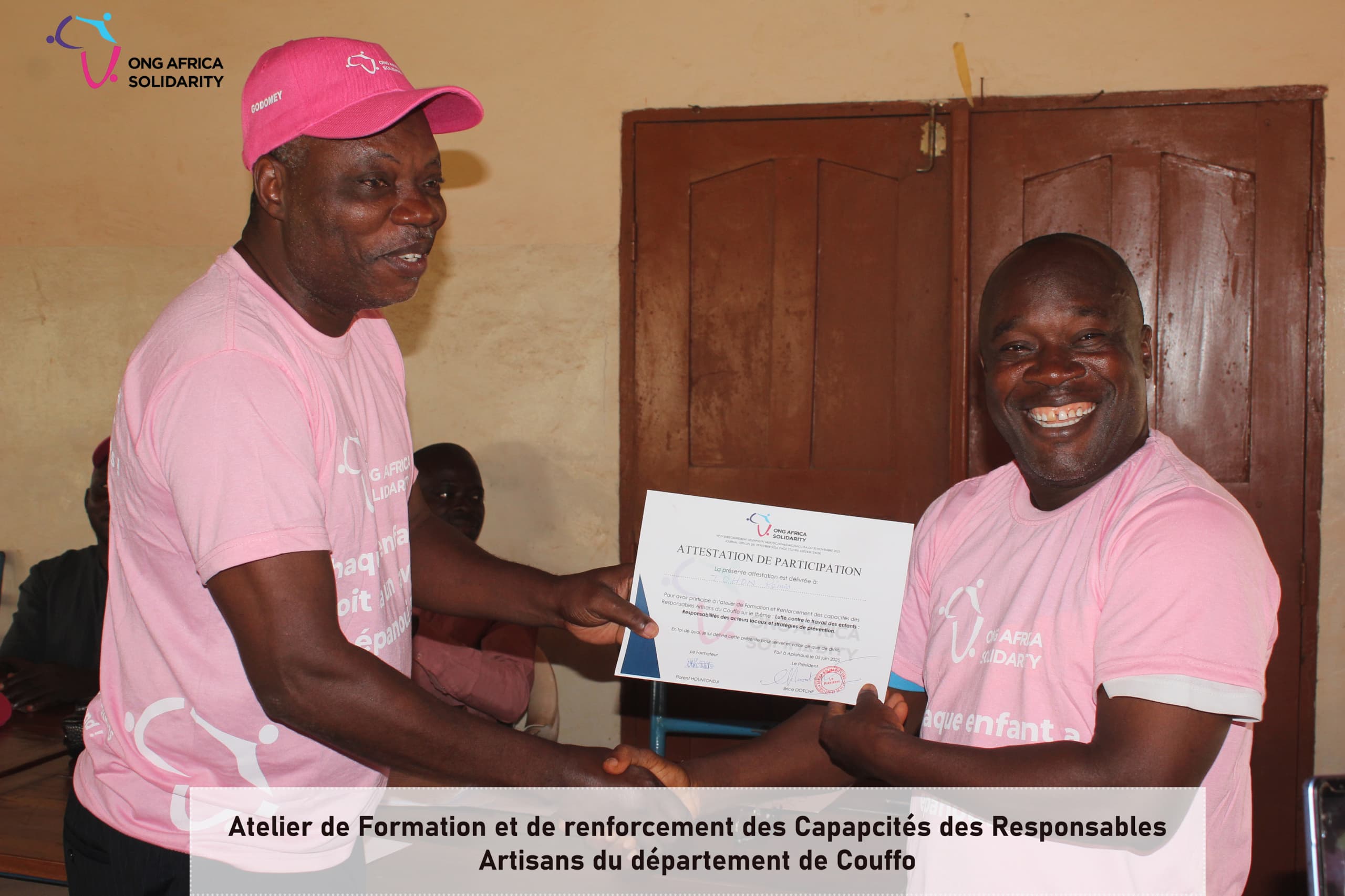Mr Tomabé GOUDAMI, Chef Service /Affaire Sociale et Éducation de la mairie d’Aplahoué, (Représentant le Maire et la SE de la commune d’APLAHOUÉ empêchés) a lancé et clôturé officiellement l’atelier de formation et renforcement des capacités des Responsables artisans venus des 06 communes du département de Couffo. La cérémonie s’est déroulée à la salle de conférence des Artisans d’AZOVÈ- CENTRE.